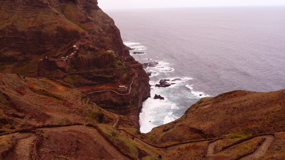 Santo Atao est l’île en face de Sao Vicente, et est beaucoup plus verdoyante. Celle-ci est réputée pour ces randonnées avec vues incroyables dans les montagnes et le long des falaises. Santo Antao est très escarpée et volcanique avec trois sommets qui culminent au-dessus de 1800 m. L’activité principale est l’agriculture. Les récoltes de banane, canne à sucre et maïs sont ensuite exportées vers Mindelo. On pourrait y passer plus d’une semaine sans problèmes !